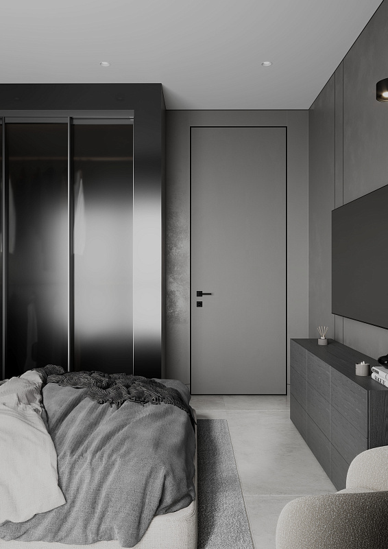 Система «Океан» отвечает современным тенденциям минимализма. Двери можно собрать без горизонтальных и вертикальных профилей, а также используя горизонтальный профиль для подвесных дверей «Океан» с вертикальным профилем NEO-Лайт, что позволяет использовать вставки из стекло или зеркала (вариант с NEO-Лайт представлен на визуализации).
